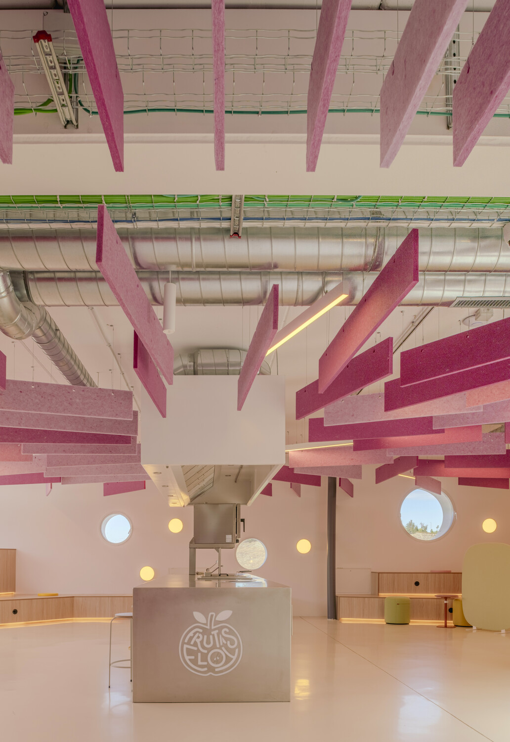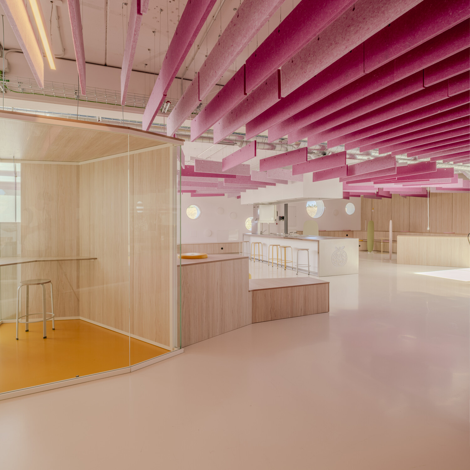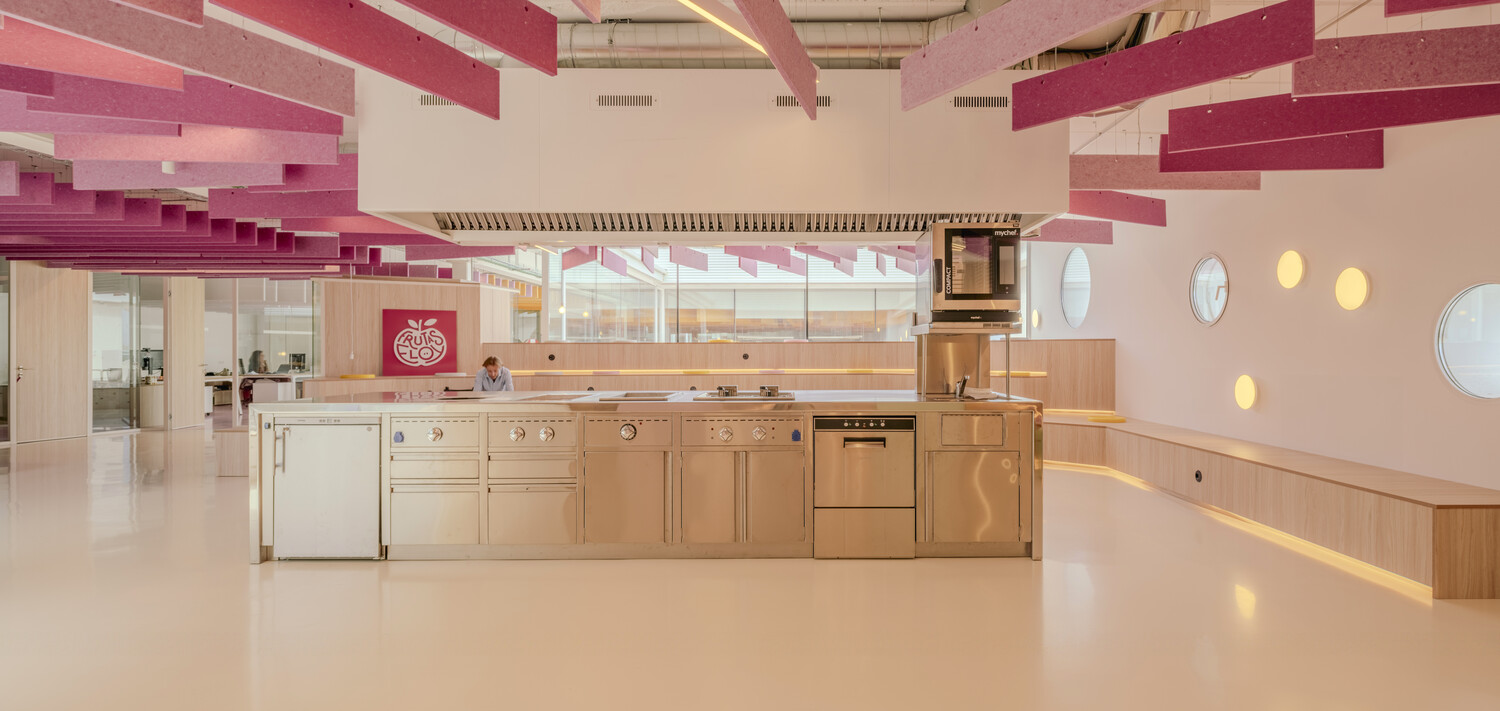 El proyecto desafía los modelos tradicionales de oficinas al integrar espacios multifuncionales que combinan trabajo, interacción social y experiencias sensoriales. La parte más singular del diseño es un área de show cooking situada en el corazón de las oficinas. Este espacio no solo permite a chefs estrella Michelin realizar demostraciones culinarias para clientes y empleados, sino que también se convierte en un punto de conexión entre todos los usuarios. Es un espacio que celebra la gastronomía como una forma de inspiración, cultura y cohesión social, fusionando el ámbito laboral con el cultural y recreativo.