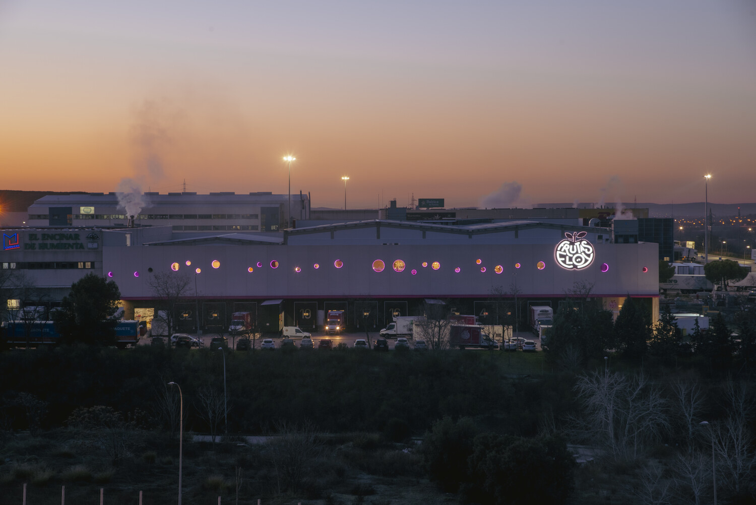La nave es un almacén logístico frigorífico de dos niveles para 32 camiones que cargan y descargan las 24 horas.