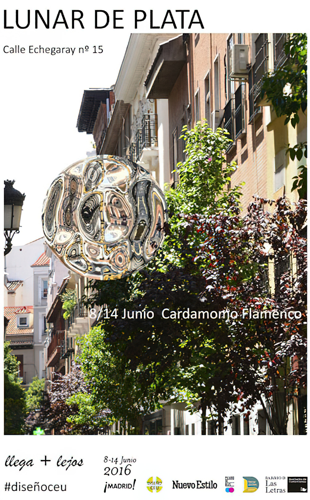 La primera es el LUNAR DE PLATA, un atractor urbano que provoca la ralentización del paso al ser observado. Su misterio se mantiene durante todo el día, la luz del contexto lo transforma constantemente.